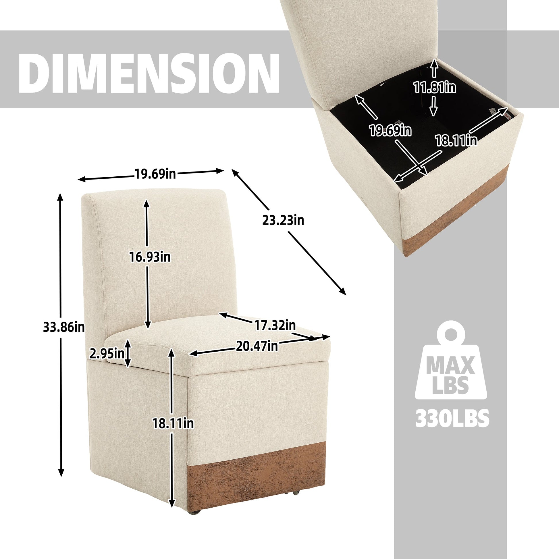 - Large Hidden Storage Space: With large storage space under the seat, these dining chairs with wheels easily store magazines, blankets, pillows or snacks, making your room clean and tidy. Very suitable for small apartment.